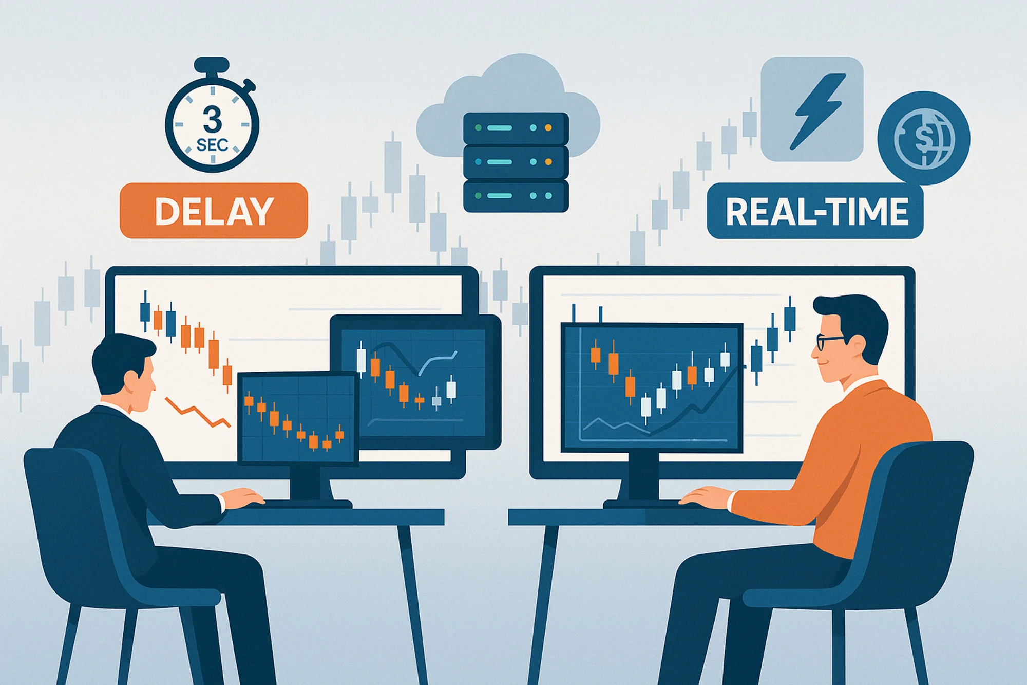 - Investor B menerima data real-time langsung dari feed bursa. Dalam 3 detik tersebut, harga sudah berubah signifikan. Investor B mampu mengeksekusi keputusan lebih cepat, sementara Investor A kehilangan momentum.
